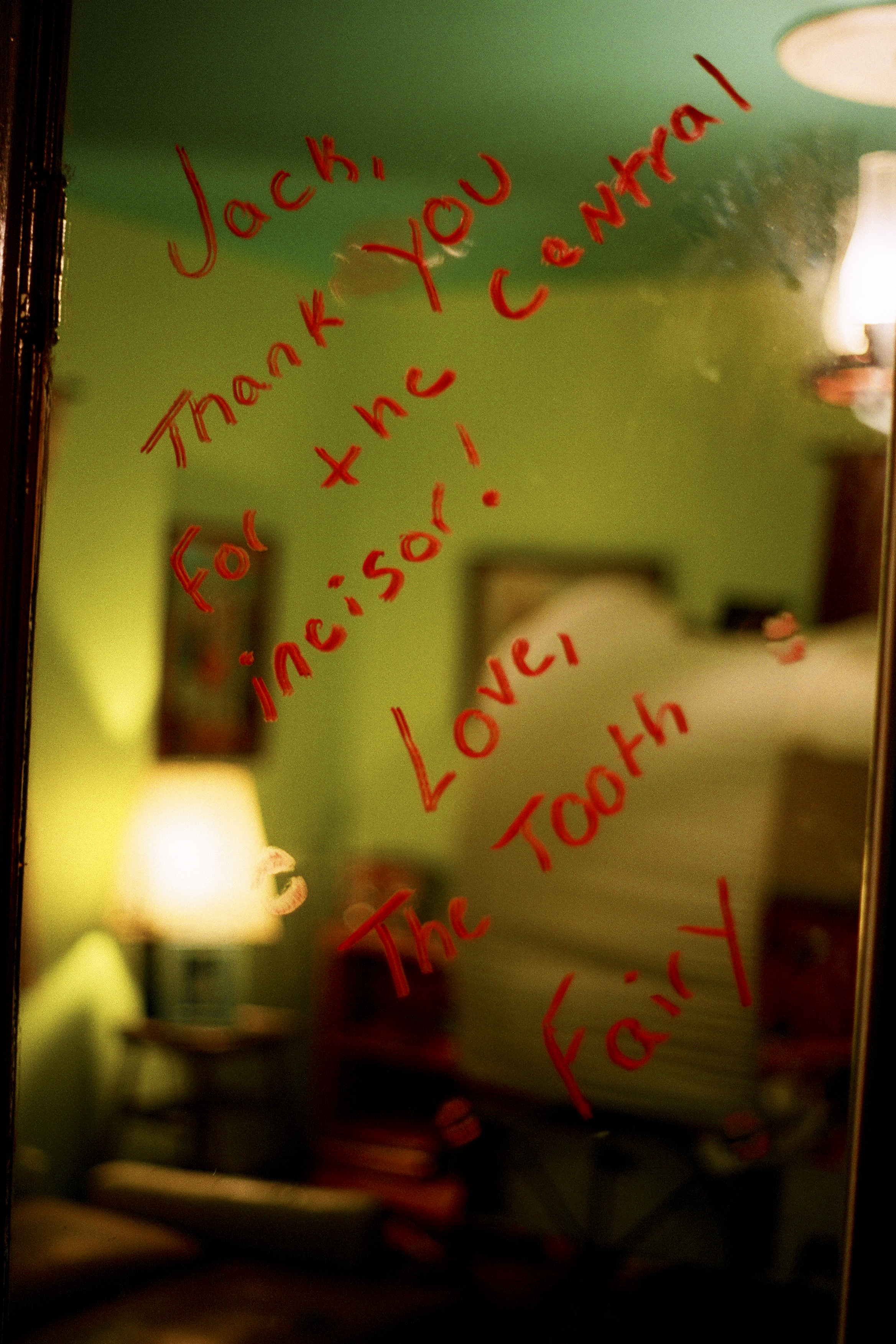 Grabbing the last set of clean clothes that I had along, I headed off to the gym to take a shower and feel human again.  After a brief stop at 7-11 for a vitamin water , and a stop at Rite-Aid mostly for a set of nail clippers, I was on my way to meet Julia and Jack.  Now as I was making my way there, I received a text from Julia informing me that Jack was losing his first tooth and that I should hurry if should want to capture it.   I was too far away at the time and the tooth was out  before I even left the gym.  But when I arrived at their home, I was greeted by Jack with a gap where his tooth used to be.   I hadn’t met Jack before this day.  I had seen a million photos of him, and heard as many stories, but we had not met.  However, when we did meet, I knew we would be fast friends.  After all I was willing to listen to him describe his video games and didn’t ask to play them myself.  After dropping my stuff off, the three of us hopped in Julia’s car and headed off for dinner.  We would be meeting her friend Grey and having Cuban food.  While Grey was the friend that we initially had in common on facebook,  I had never actually met her.  So, we exchanged pleasantries and discussed the wonder of photography  and Julia, as well as the project, but mostly Grey and Julia chatted and Jack and I further discussed video games and how delicious fried bananas were.  Grey exited early and after dinner,  Jack was greeted with a surprise.  It seems that the tooth fairy had already gotten word about Jack losing his first tooth and sent him a flan at the restaurant.  He was quite surprised and curious about it and had many questions, most of which Julia was able to come up with some sort of answer that made perfect sense.  We quickly finished the desert and headed back to their home and mine for the night.  When we arrived back we soon noticed how late it was getting.  If we were to take photos, we needed to do it then as Jack had to go to bed.   As I was not only exhausted, but also in a food coma, I didn’t exactly spring into action, but I did get moving and photos were taken of  everyone including Mavis, their bulldog.  A few of these photos are featured in this blog, and more will be up soon.  With Jack off to bed, it was time for the tooth fairy to make an appearance.  Money was placed into a small bag along with some fairy dust, which was also scattered in various places around the room.  Jack was also smothered in kisses and an note was left on his mirror.  Julia made quite a show of it was quite impressive.  After all of this, and some further conversation, it was time for bed and my long and exhausting day, I was more than ready.