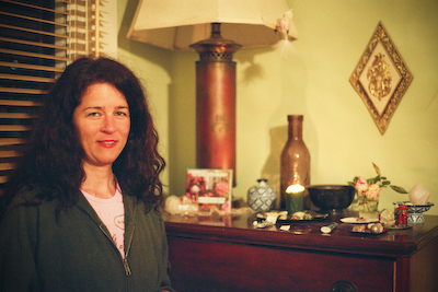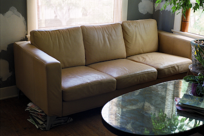 Couch #7 belongs to Buffy. It was given to her by neighbors across street less than a year ago. It has an issue with leg and is propped up on some books. It is leather and kinda new. It is very comfortable. Buffy is single and lives in a 2-story duplex with her roommate Patricia, in Silverlake, California. She has a cat named Birdy. She is currently making a CD of her music every month and selling them in her CD of the month club. People can subscribe to the entire series or buy them individually. She also does child care and psychic healing and loves the earth full time. Buffy likes to lay on the grass and look at the sky and watch the wind. She likes to read, drink wine with friends, play music, and sing. Buffy also likes flowers, likes to dance, although she doesn’t do it that often, and cooking. She embroiders and collects records. Buffy is from Utah and grew up Mormon. She has lived in San Francisco. She sees things…like fairies. Buffy is clairvoyant. We met through our mutual friend Kate at the Cha Cha Lounge. We only met once more, when Kate was moving away. We missed each other at the Leslie and the Badgers record release show. One of her favorite songs is “The Christmas Song” by Nat King Cole. She likes the movies “What’s Up Doc?”, “The Jerk”, “West Side Story”, and “The Misfits”. She loves mashed potatoes. She thinks that 50 nights might not be enough, and hopes that I get on NPR, Oprah, and Jon Stewart. Her fortune for the day was “Every heartbeat creates a miracle”.