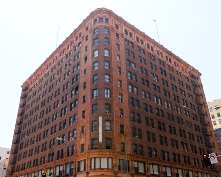 Greg and I met through the photo-nerds yahoo group, which is also how I met Bela, and some other of my host. The yahoo group was started by a former teacher we both had and is a way for like minded individuals to post about photography related topics, whether it be about equipment, exhibitions, or even one of our photos, it has kept us in touch with each other. Greg and I first met in person at LACMA when a a small group of the photo-nerds went to see some exhibits there. That was October 2009. We are kind of two friends that have come together because we have a lot of common interests. Greg and I are just getting to know each other and have only seen each other in person a few times, while staying connected on the yahoo group and on facebook. Greg thinks that my “50 Couches in 50 Nights” adventure is a really cool project, and that I am going to have alot of success with it. He wanted to be participate, get to know me better, as well as show off their place. Greg likes The Fall, specifically “Cyber Insect”. Greg is now a vegetarian/vegan, but in the past he really liked carnitas. Nowadays, it’s bean and cheese burritos. Greg enjoys the Coen Brothers films, especially “No Country for Old Men”, as well as David Lynch’s “Eraserhead” which had just seen in a theater downtown. It had been 20 years since the last time he saw it. Greg thinks that it is a very ambitious project I am doing by not only sleeping on the couches, but also by getting alot of information from the people I am staying with. He thinks that it’s even better than the original concept. Greg also feels that it’s kind of cool that I’ve met some people for the first time the day that I slept on their couch. Greg lives in a fairly old part of Los Angeles. It’s close to Skid Row. There’s lots of crotchety older homeless people. That fits in with how Greg feels. He feels kind of old and grumpy. Greg also likes historical buildings and this neighborhood is full of them. He likes the old theatres on Broadway. Nicole likes the Bradbury Building. Looking at the modern building and the lights from the roof at night is cool, but most of the time he finds himself looking at the buildings in the neighborhood during the day from the street, specifically the building on the southwest corner of 7th and Broadway which he passes most every day on his way to the subway.