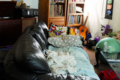 Couch #20 belongs Shannon, or really it belongs to her roommmate, Andy. They live in a house in Fullerton, California. Fullerton is above Anaheim. It’s ten minutes away from Disneyland. At some point the house was moved to it’s present location to make room for the 605 Freeway but Shannon doesn’t know where it used to be. The house is on the oldest road in Fullerton. Shannon grew up in the house since she was 2. Her parents still own it and she rents it from them. Shannon also lives there with her daughter Sydney, who is ten years old and Andy’s dog, Neko.