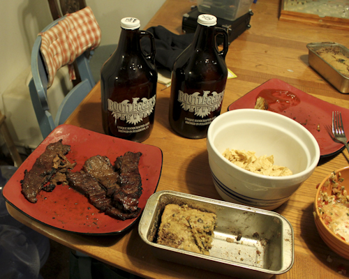 After a little while getting to know each other, Shannon finally emerged, showered and dressed. She gave me the tour of the place showing me all of the artwork that she had up on the walls, including a number of Bettie Page pieces by Olivia. She also showed me her certificates for rolfing and explained it further. You can read more about it here… (http://en.wikipedia.org/wiki/Rolfing). While there was a some home made bread and some chips and salsa on the table, it was time for some real food. The grill was started and some hunks of beef were thrown on for dinner. A picture with words “Captin Salty” hung on a post outside. I was informed that Captin Salty was a pirate. I can’t tell you much else about Captin Salty except that he does have his own Facebook page.