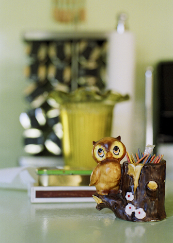 I didn’t get up for a while. I dozed in and out of sleep while the television broadcast silently in the background with the sound muted. Eventually I got up and made some coffee. Maura doesn’t drink coffee, but does usually have some really good coffee in her place. There wasn’t any milk, but I made due with almond milk. It was actually pretty good. As I hadn’t really taken any photos around the house, I took my couch photos as well as pictures of all kinds of things around the house, some of which we had discussed the night before, including an artistic black and white nude photograph of Maura’s Aunt when she was pregnant back in the ’70’s. I also captured my favorites with shots of her bookshelf, refrigerator door, and various funny signs and knick-knacks around the place. Not in any rush to go anywhere quite yet, I was also able to go through my so-called normal routine. I checked my email and other things before finally leaving at around 145pm. Checking my regular mail, getting more film and stopping for lunch were on the agenda before I got to my next couch in the Miracle Mile neighborhood of Los Angeles.