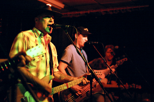 While the house was rockin’ I bounced around from the front of the stage to the side snapping pictures. I wanted to get some good shots of the band and some good shots of David. I had both my film and my digital camera with me and alternately used one or the other. I didn’t end up getting much. It was dark and so lots of the shots just came out blurry. But as that night was somewhat of a blur for me, it seemed appropriate. There were some pretty young ladies at the front of the stage dancing and singing as well and that distracted me as well. When the Mules were done playing there, we sung “Happy Birthday” to Jayne and cake was served. Rebecca and I then wandered outside for some air. She struck up a conversation with Dave Phenicie and some of the other musicians from both bands. I took more photos and ended up in a conversation with some strangers regarding my photography. They wanted to see my photos and i was happy to oblige. Soon, though, it was time to leave.