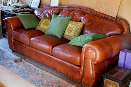 Couch #14 belongs to Zeeva. The carpet and the couch were purchased for her Bashtet Movement Arts Studio, while she was still blind. She went with a photographer and artist friend of hers to the furniture stores on La Cienega. Using a color chart, Zeeva’s friend named the colors and described the patterns to her. She also felt the carpet. She told the salesman that she was teaching belly dancing and yoga and he was thrilled. Because he was thrilled, Zeeva did a belly dance across the carpet. The couch is comfortable. It was purchased for guests to sleep on. The Yogi Balananda held a peace meditation at Bashtet while sitting on this couch. Zeeva lives in Agua Dulce, an unincorporated rural area 45 miles north of Los Angeles. She lives in the house she bought for her mother before she passed away. Zeeva lives there with two cats. Zeeva is an artist, a dancer, a peak performance specialist. She is all about inspiration and empowerment. People need to know that they can be well and beat unbeatable odds. She is a testimonial for holistic health and wellness professionals who can help people get well. Zeeva is ready for love and to be love. Zeeva draws, paints, dances, hikes, and enjoys getting together with a small handful of friends with who she can share real quality time. She also has a passion for other creative arts including drawing, sculpting as well as music, poetry, and theatre. Zeeva also is interested in mythology. Zeeva is supposed to be permanently blind, permanently brain damaged, and permanently disabled due to an injury. She lived that way for 5 1/2 years. We are Facebook friends and met when I showed up at her house the day I was sleeping on her couch. When she was brain injured she could not listen to a lot of music, because the input was to overwhelming for her brain. Recently, a friend gave her a sampling of music that missed during that time, including a jazz remix of “Torch of Freedom”. That version has the lyric “I was blind and now I see”, which obviously strikes a chord in her. Zeeva likes peaches and reminded me that it is the season for peaches. Ripe, juicy peaches. Her favorite films include “Lawrence of Arabia”, “The Red Shoes”, and “Bagdad Cafe”. Zeeva is inspired by the project and thinks it will be healing for me. Zeeva lives in state of divine grace and optimistic realism.