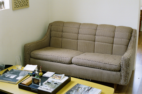 Couch #25 belongs to Melanie.  She lives in an apartment in a tri-plex in the Echo Park neighborhood of Los Angeles with her dogs and the occasional stray.  The couch is a glorified dog bed and cat scratching post.  Melanie dated a lovely man for years named Jon.  He was in a movie called “Manure”.  Everything in the movie was brown.  The couch came from that movie.  Melanie has slept on the couch many times, normally during the day.  She finds it very comfortable, but she can sleep anywhere.